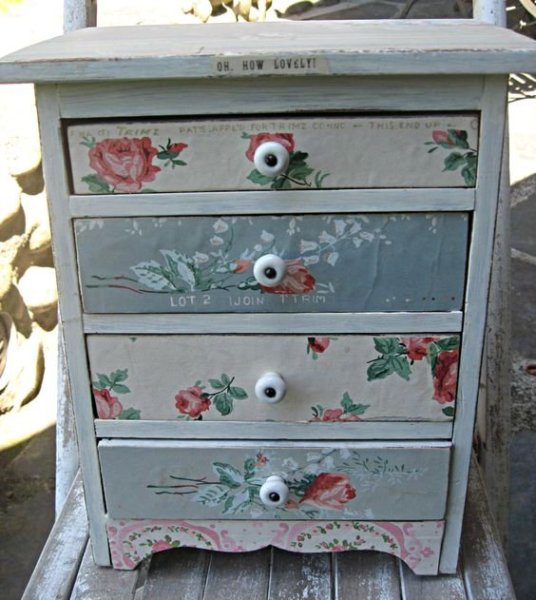 Amikor a totális felújítás vette kezdetét a hálóban, elhatároztam, hogy megújulnak a bútorok is. Legnagyobb gondot a komód jelentette, mert a sötétbarnára pácolt bútordarabom már nem passzolt a háló új külsejéhez. Mivel azt vallom hogy bútort soha (de soha) nem dobunk ki, így rögtön a megoldáson kezdtem törni a fejem. Az elhatározásom az volt, hogy átfestjük, a második verzió: tapétázzuk, a harmadik pedig: ha mégsem lenne jó, akkor kitesszük a ”raktárba”. Örülök, hogy ez volt a sorrend. A barna pác kapott egy kis csiszolást, egy kis patinát és fehér festéket. Legvégül porcelán fogantyúkat. Olyan szép lett, hogy mindenki ámul rajta. És mindez fillérekből lett:).