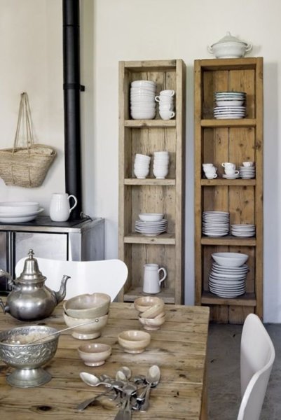 Ha nyitott polc mellett döntünk – olyan dolgokat tegyünk rá amik akár színben, akár stílusban vagy anyagukban hasonlóak. Ettől lesz szép, érdekes, rendezett. Ne törekedjünk a mindent mutassunk meg-re, illetve ami szem előtt van, azt használjuk is.