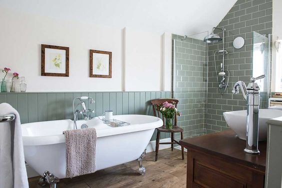 Fa burkolat, és fából készült bútorok is nyugodtan kerülhetnek a fürdőszobába.