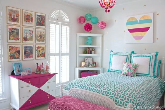 Inkább legyünk kreatívak, lehet a fal színe fehér hiszen úgyis teli lesz színnel, játékkal…polcal, baldachinnal….. Természetesen jelenjen meg a kedvenc mesehős a falon, de ne uralja a szobát. Én jó megoldásnak tartom a képeket amellett, hogy mindig aktuálisan változtatható a tartalma, kiállítást is varázsolhatunk a rajzaiból :).